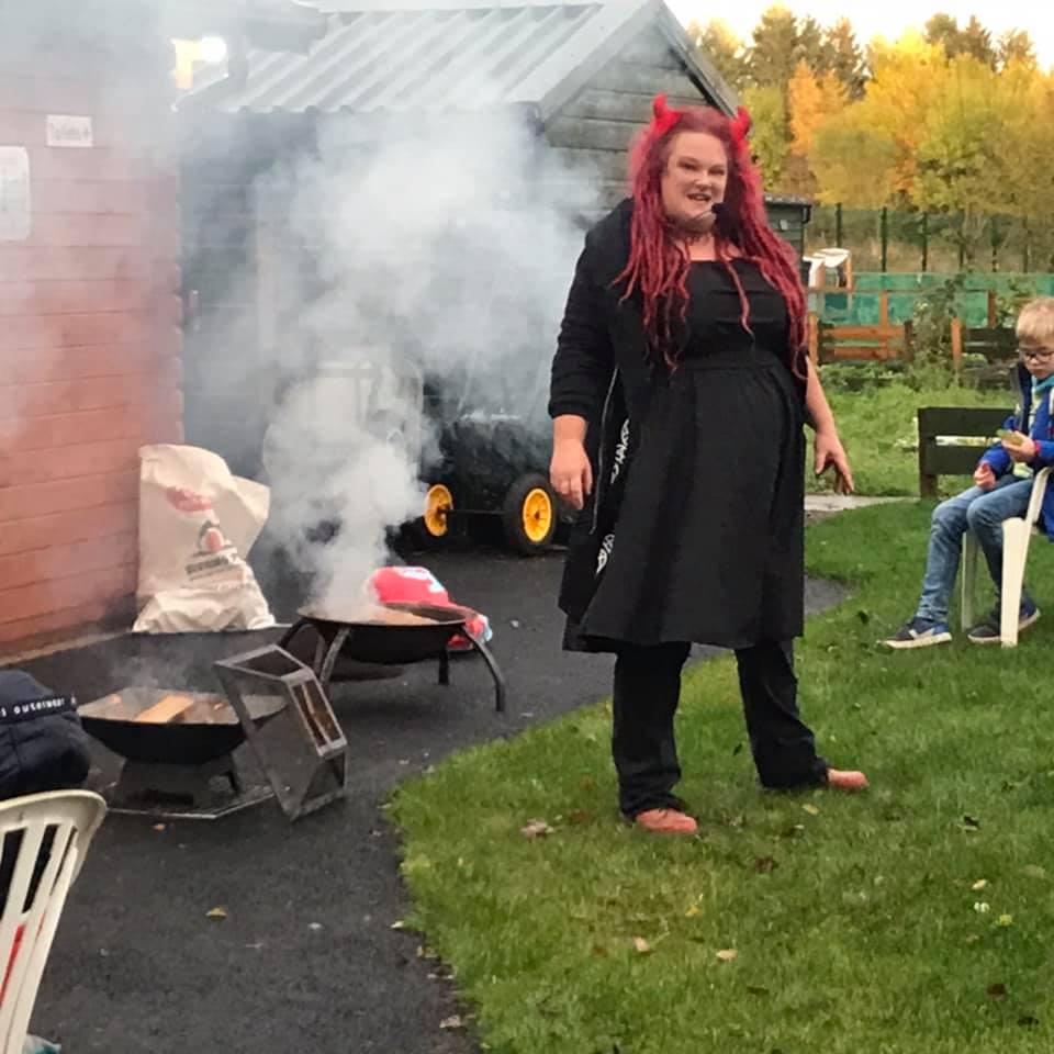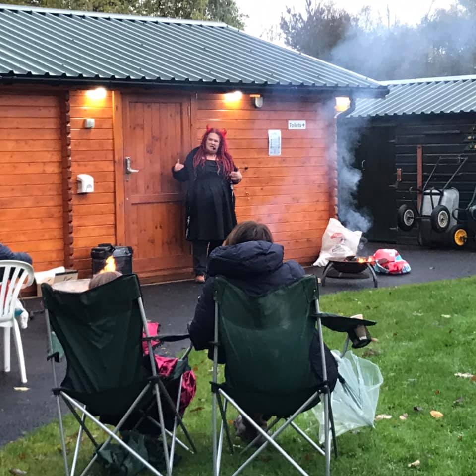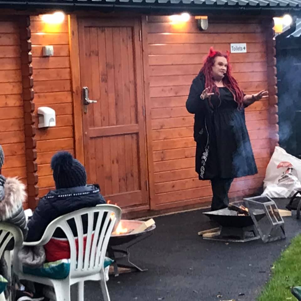 There were two sessions – an earlier one for families round the fires as it grew dark, and then a second adults-only session in the dark where the stories had a much more sinister tone!