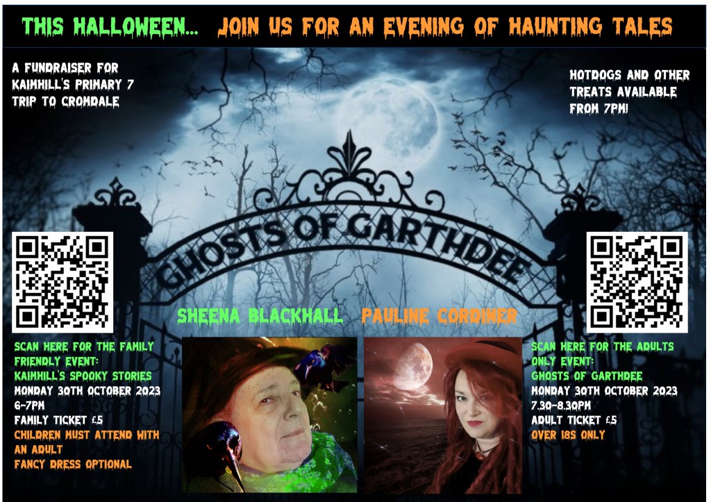 Please feel free to share – there’s two sessions (links below) – one for families and one for adults only. This is a fundraiser to subsidy the Kaimhill P7s trip to Cromdale next year. We’d like as many of the bairns to be able to attend as possible as costs have risen so much.