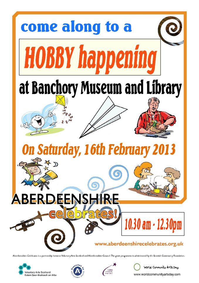 it fitted in nicely that I could be found telling stories at Banchory Museum and Library’s Hobby Happening event on Saturday 16th February from 10.30 to 12.40.