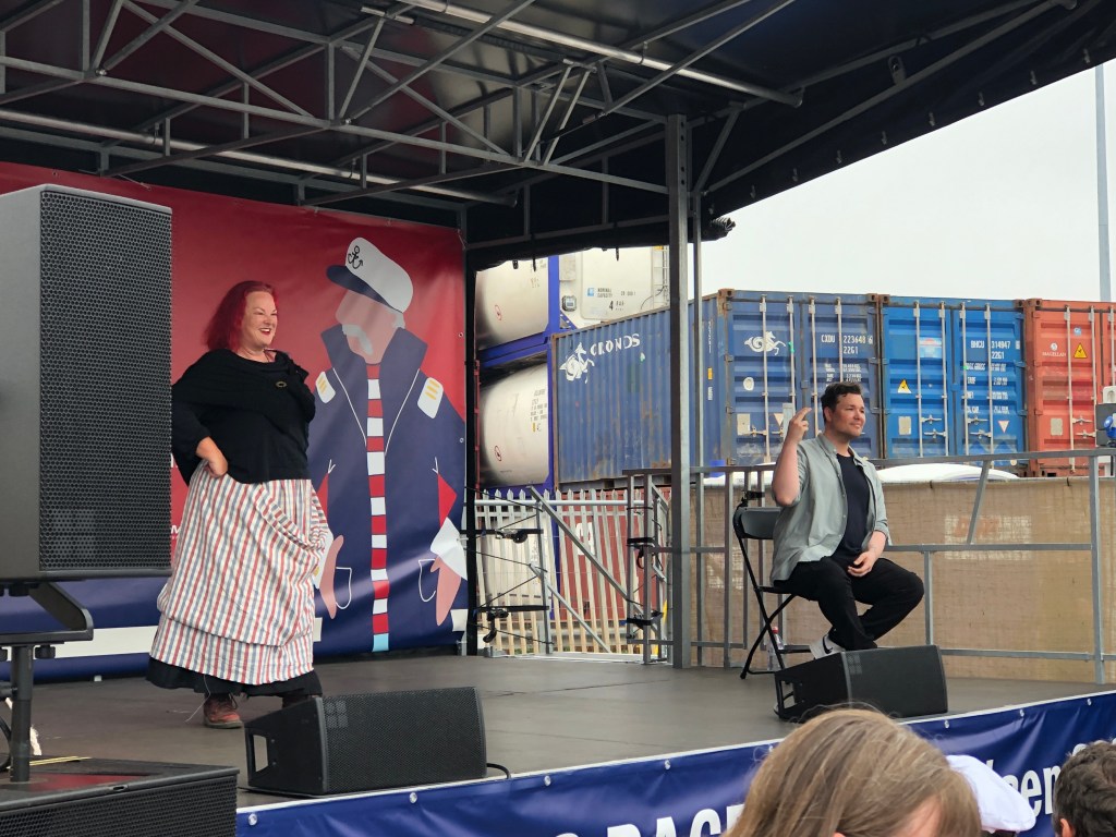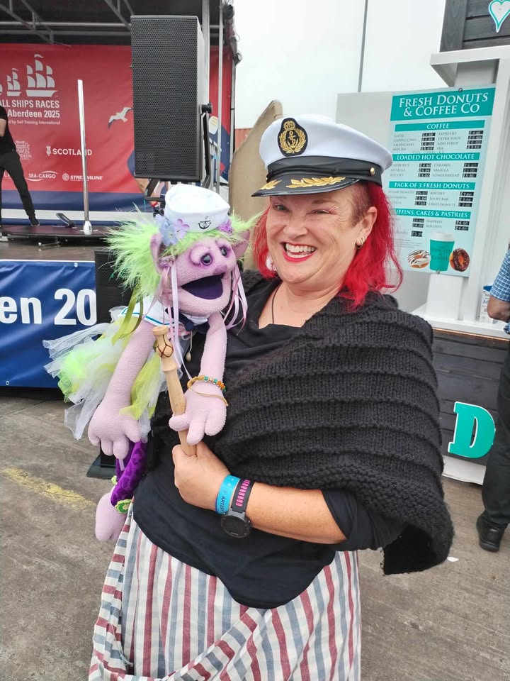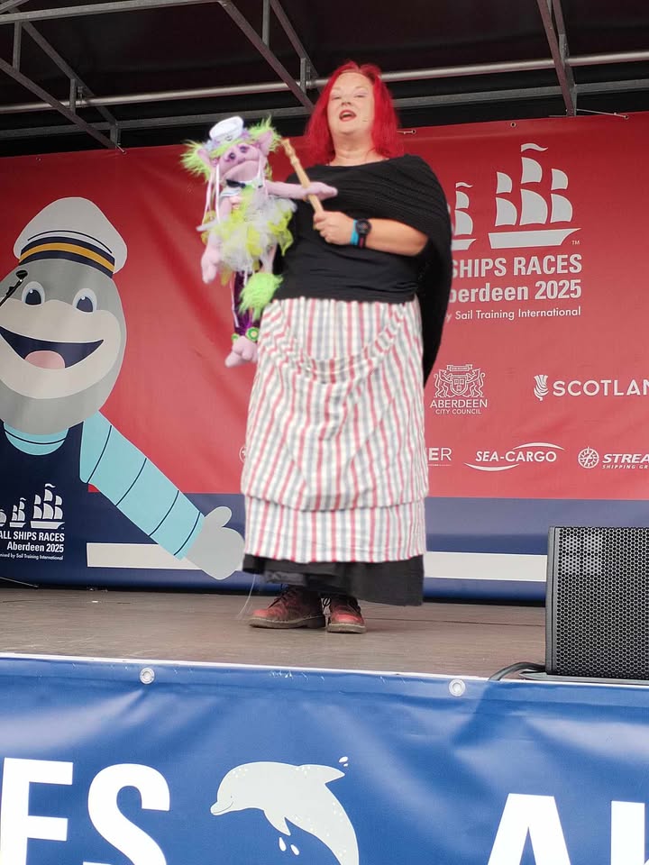 Wow, wow, wow! What a fantastic time I had today at the Tall Ships! I had three sets on the Family Stage at Blaikies Quay and despite a rainy start, there was soon a super audience for my first set! Elsie the fishwife joined me to tell the story of a grumpy fishwife and there was time at the end for a tale from the Arabian Nights of a fisherman and a genie!